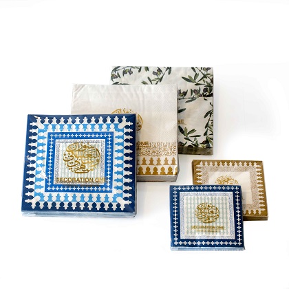 مناديل ورقية مطبوعة مزينة بابيات المتنبي:على قدر اهل العزم تاتي العزائم